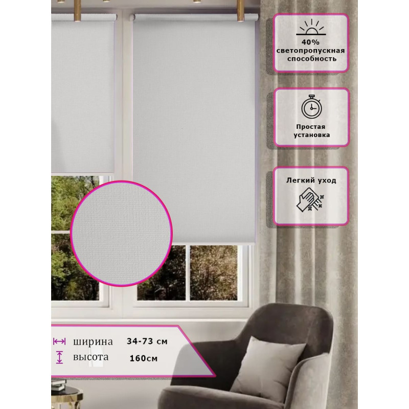 Штора выполнена из прочного полиэстера с обработкой специальным составом отталкивающим пыль.