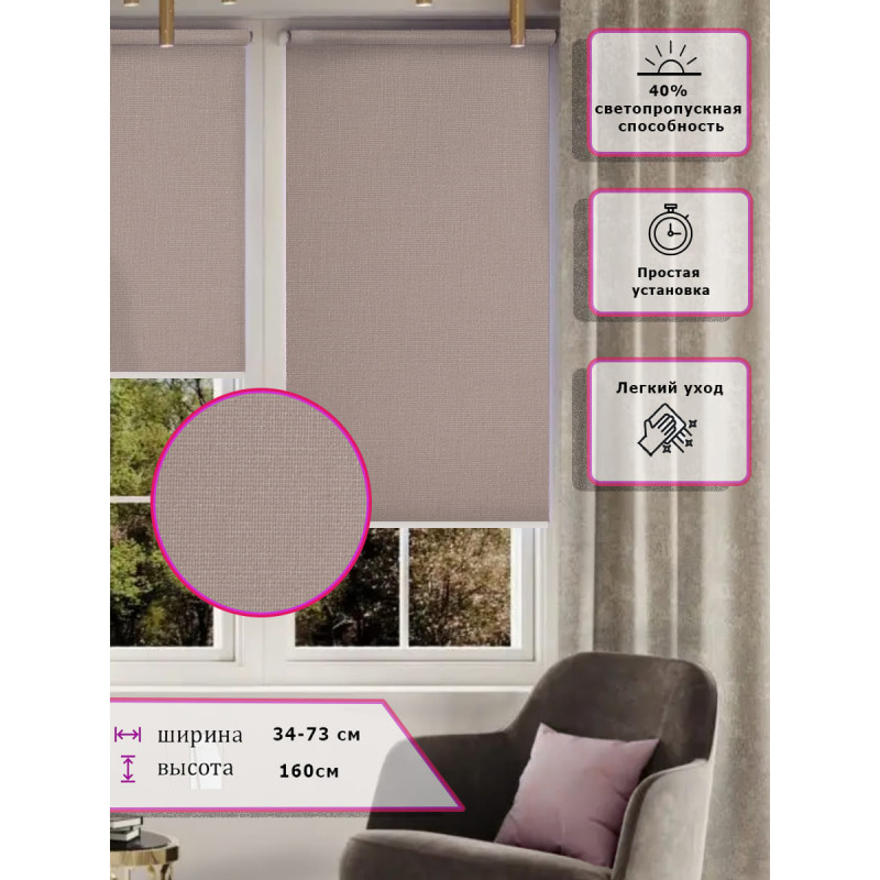 Штора выполнена из прочного полиэстера с обработкой специальным составом отталкивающим пыль.