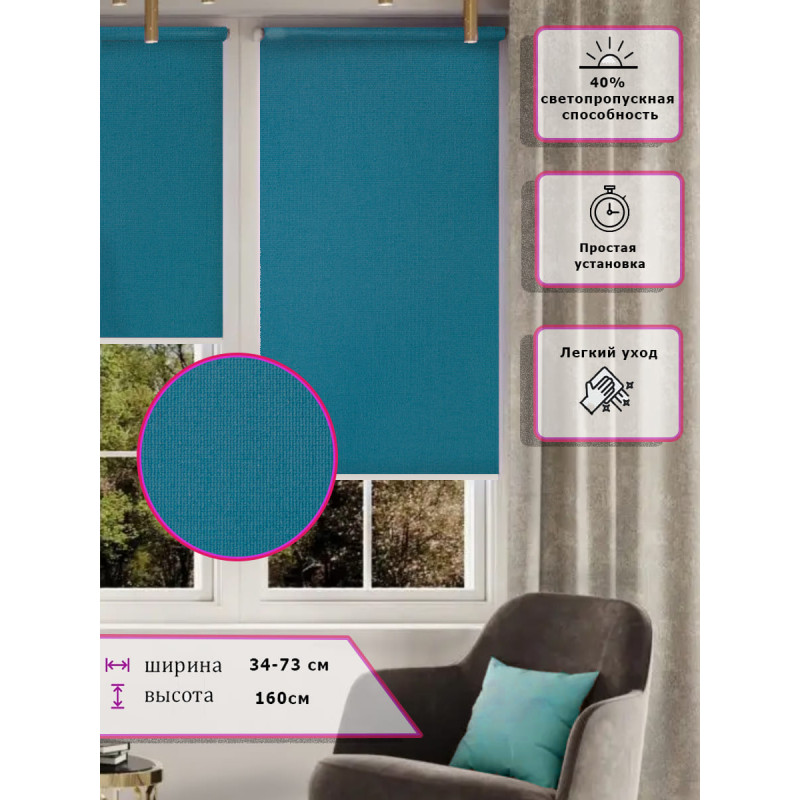 Ролл-шторы Бирюзовые Арт.6000-236 стильное и практичное решение