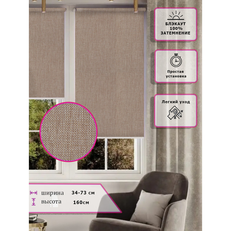 Ткань обладает отличной цветоустойчивостью 100 затемнение со специальным покрытием защищающим помещение от нагрева.