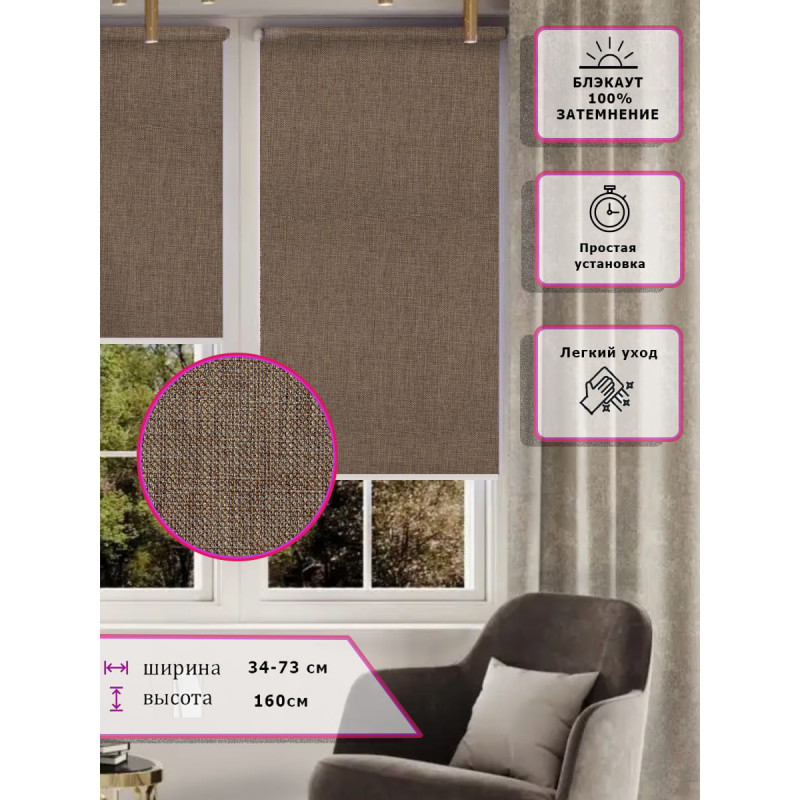 Ткань обладает отличной цветоустойчивостью 100 затемнение со специальным покрытием защищающим помещение от нагрева.