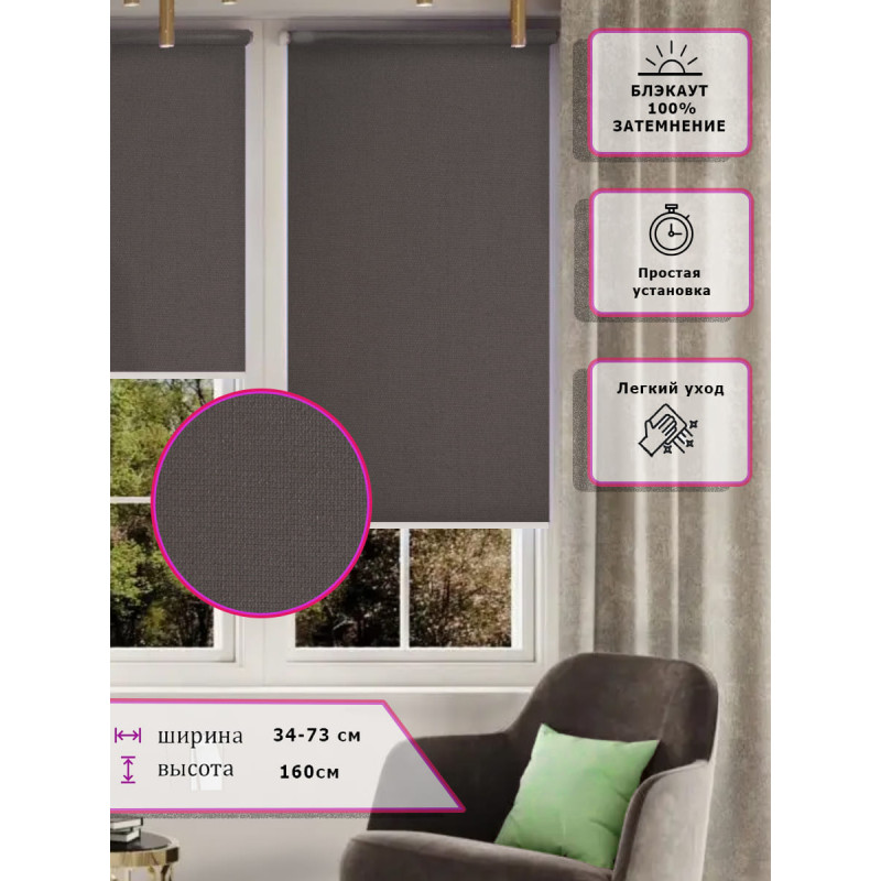 Ткань обладает отличной цветоустойчивостью 100 затемнение со специальным покрытием защищающим помещение от нагрева.