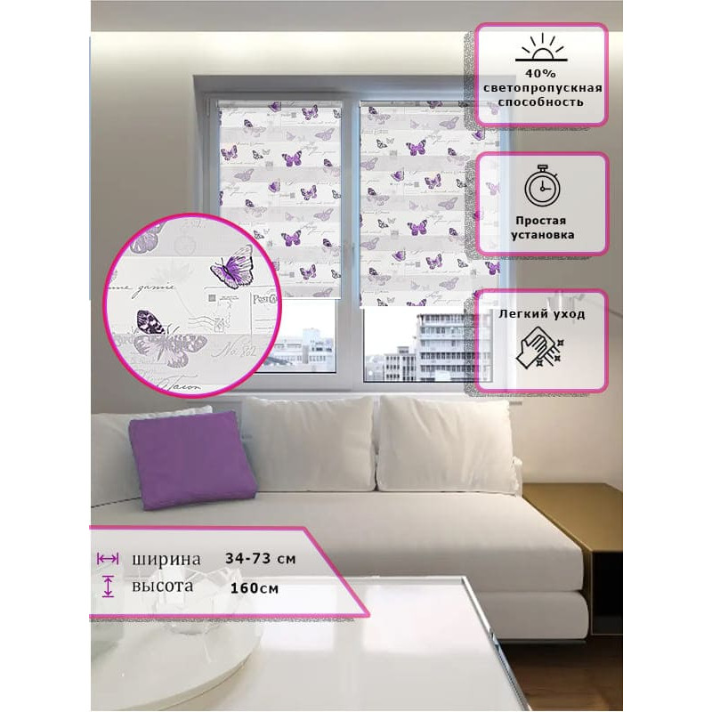 Ролл-шторы День-ночь Зебра Бабочки Арт.5417-01 стиль и функциональность