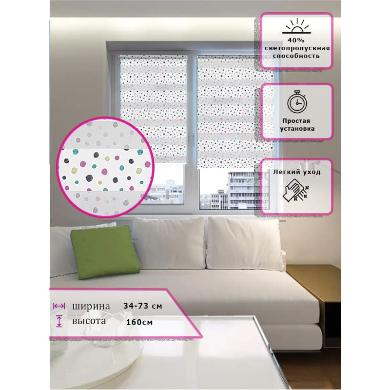 Ролл-шторы День-ночь Зебра Цветной горошек Арт.5415-02 стиль и функциональность