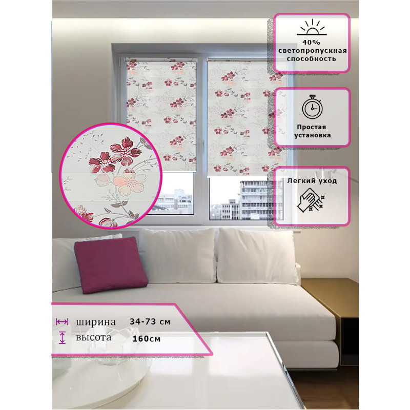 Ролл-шторы День-ночь Зебра Цветы красные Арт. 7341-004 стиль и функциональность