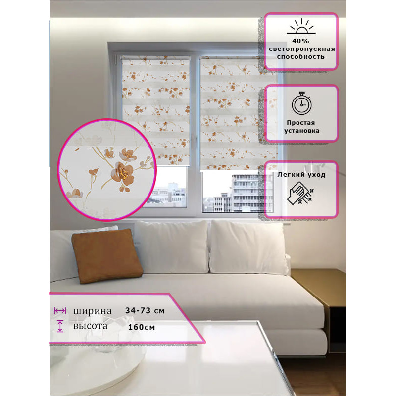 Ролл-шторы День-ночь Зебра Цветы оранжевые Арт. 6467-012 стиль и функциональность