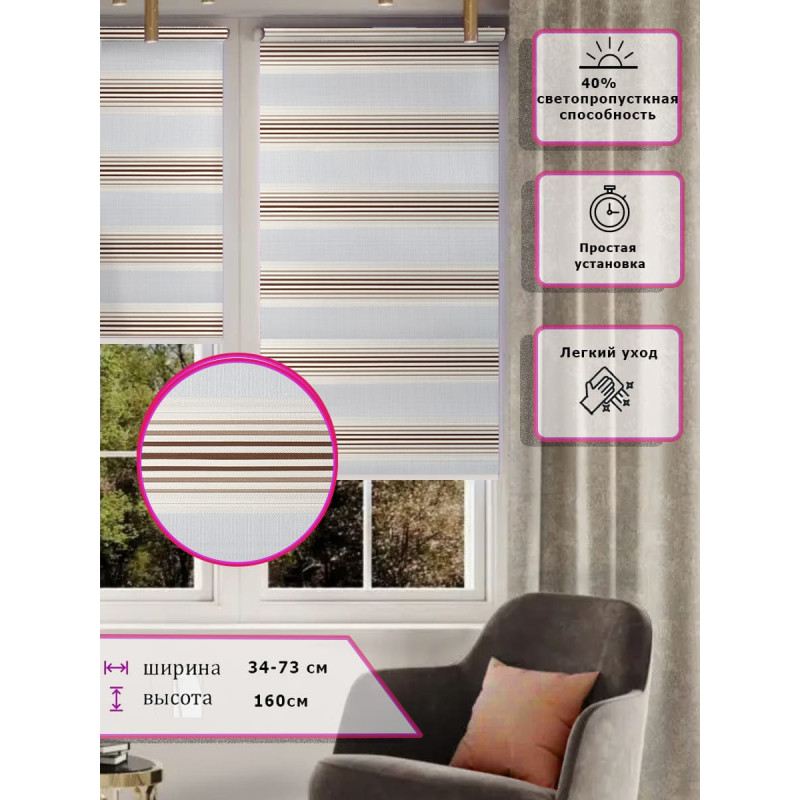 Ролл-шторы День-ночь Зебра Гофрированные белая полоска Арт.3691-005 стиль и функциональность