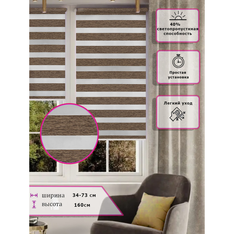 Ролл-шторы День-ночь Зебра Коричневые Арт. 2425-005 стиль и функциональность
