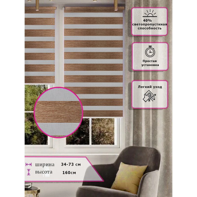 Ролл-шторы День-ночь Зебра Коричневые Арт. 2670-057 стиль и функциональность