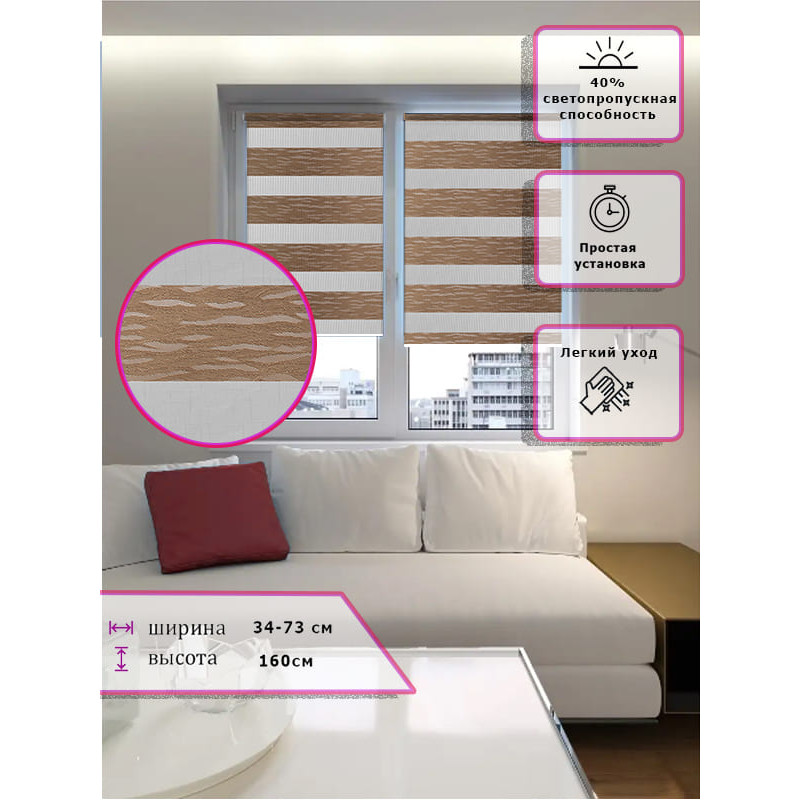 Ролл-шторы День-ночь Зебра Коричневые Арт. 3484-003 стиль и функциональность