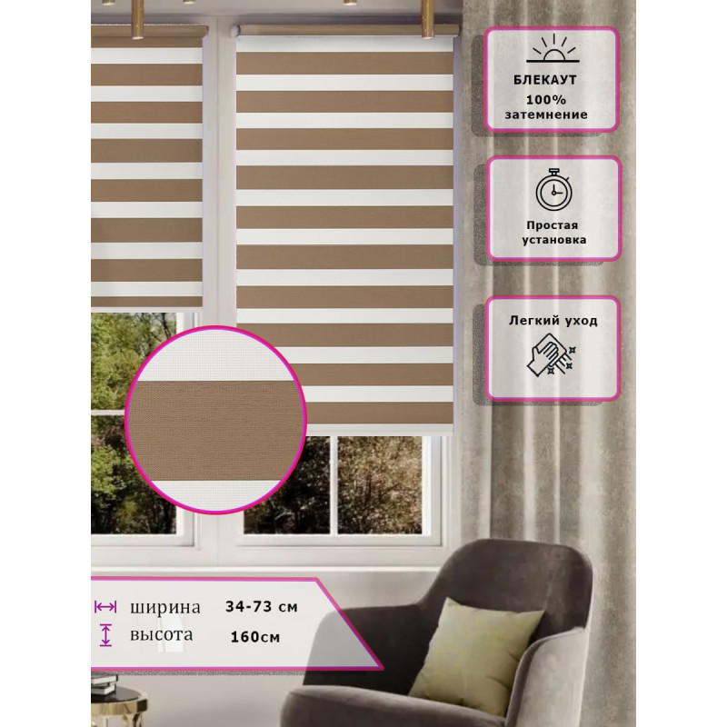 Ролл-шторы День-ночь Зебра Коричневые Арт.653-006 стиль и функциональность