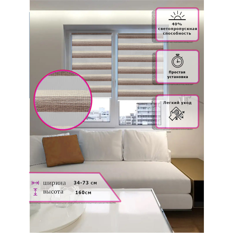 Ролл-шторы День-ночь Зебра Коричневые Арт.671-03 стиль и функциональность
