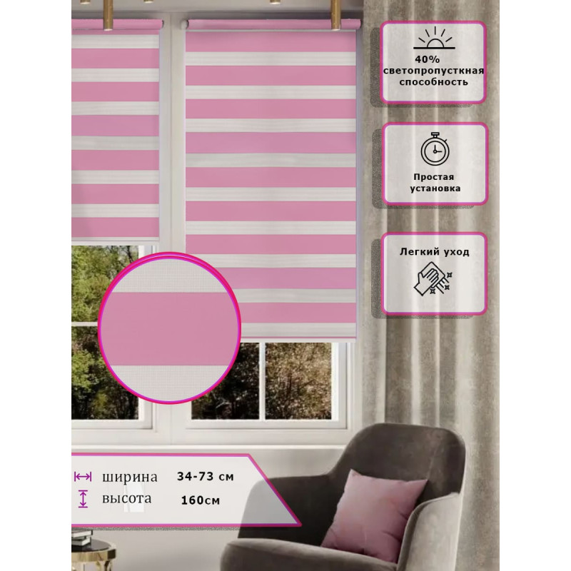 Ролл-шторы День-ночь Зебра Розовые Арт.616-007 стиль и функциональность