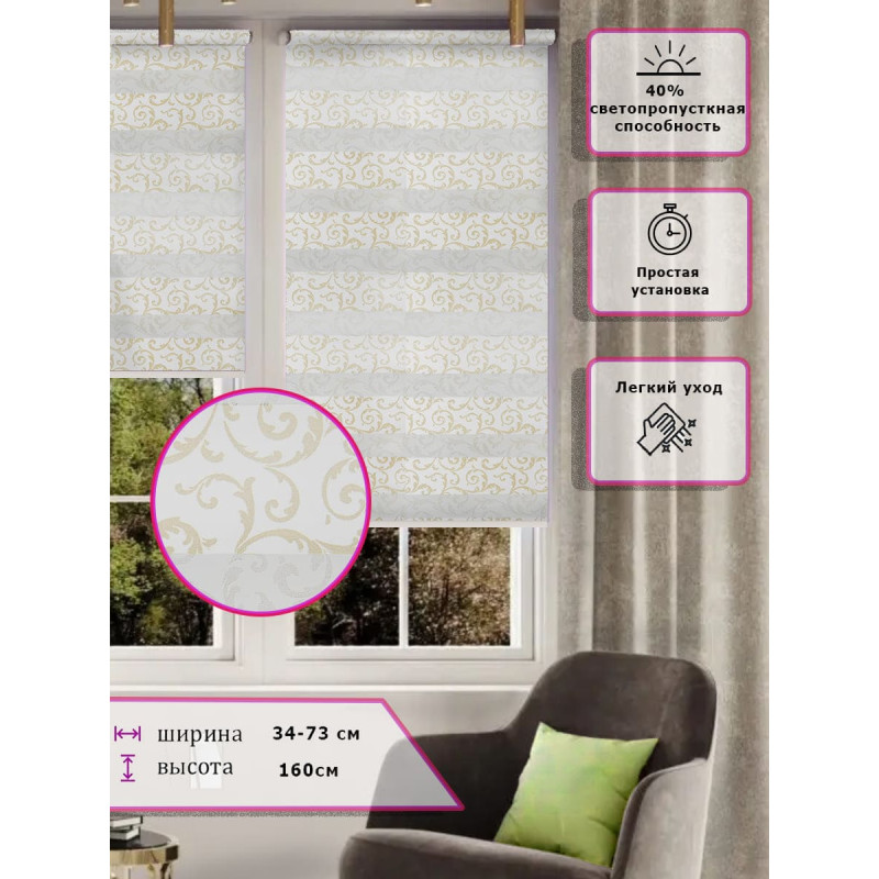 Ролл-шторы День-ночь Зебра С золотым узором Арт. 1502-014 стиль и функциональность