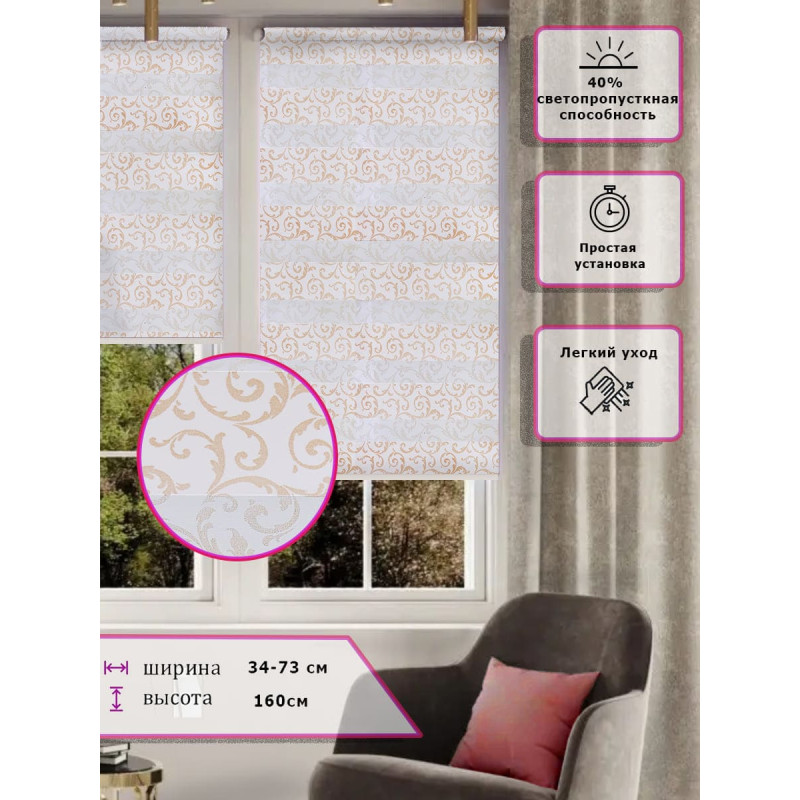 Ролл-шторы День-ночь Зебра С золотым узором Арт. 1502-015 стиль и функциональность