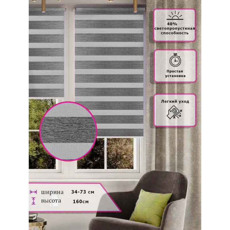 Ролл-шторы День-ночь Зебра Серые Арт. 2670-065 стиль и функциональность