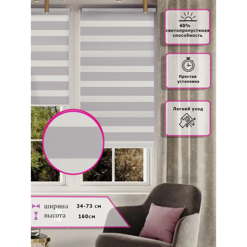 Ролл-шторы День-ночь Зебра Серые Арт.616-005 стиль и функциональность