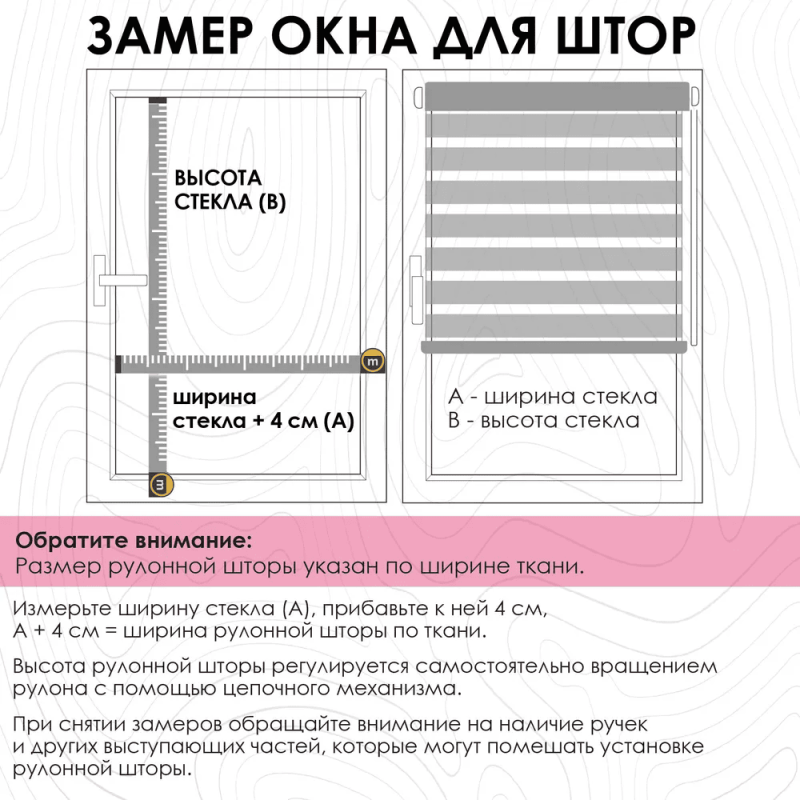 - Перед покупкой посмотрите инструкцию как правильно замерить ширину окна в карточке нашего товара