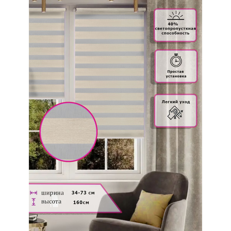 Ролл-шторы День-ночь Зебра Светло бежевые Арт. 2670-043 стиль и функциональность