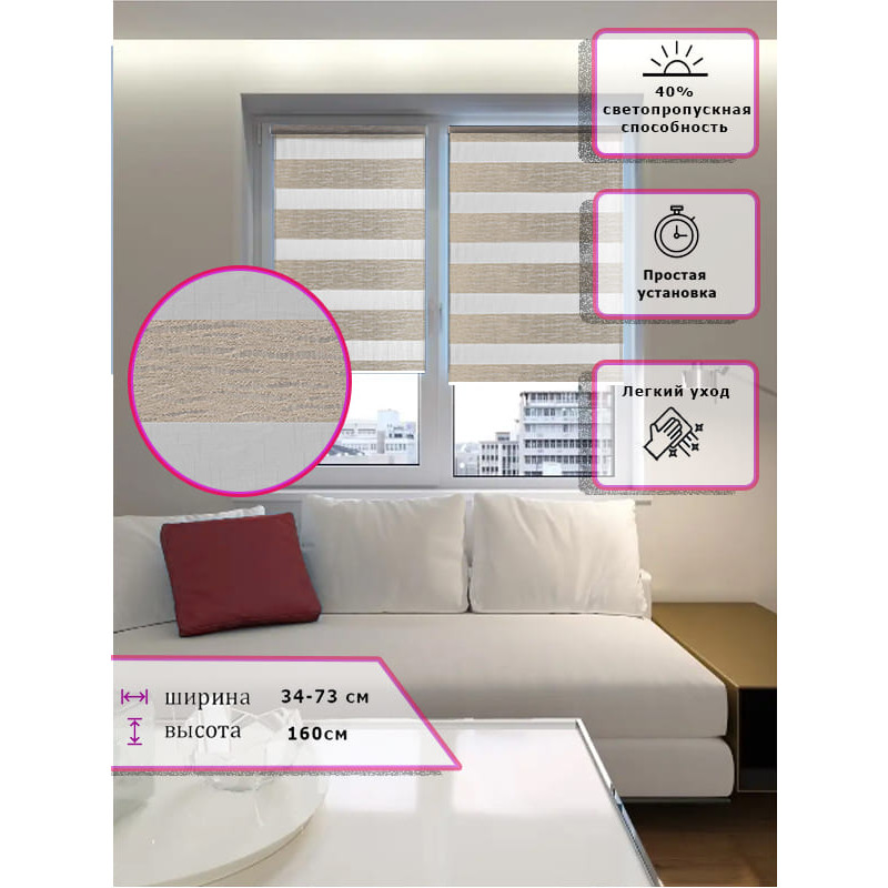 Ролл-шторы День-ночь Зебра Светло бежевые Арт. 3484-006 стиль и функциональность