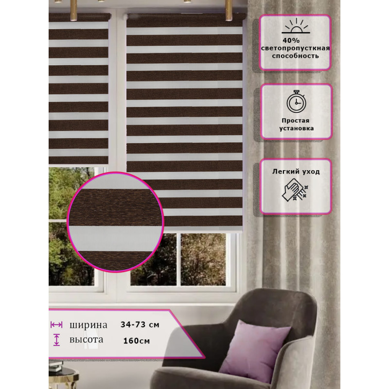 Ролл-шторы День-ночь Зебра Темно коричневые Арт. 2425-008 стиль и функциональность