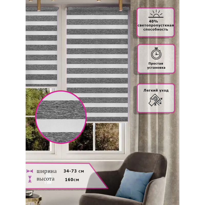 Ролл-шторы День-ночь Зебра Темно серые Арт. 2425-017 стиль и функциональность