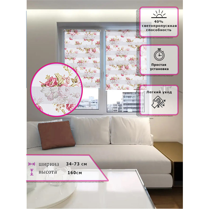 Ролл-шторы День-ночь (Зебра) Узор цветы (Арт. 13065) стиль и функциональность