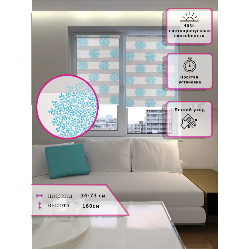 Ролл-шторы День-ночь Зебра Узор Деревья бирюзовый Арт. 1348-04 стиль и функциональность