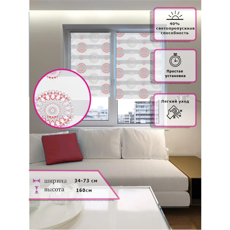 Ролл-шторы День-ночь (Зебра) Узор красный (Арт. 2422-002)