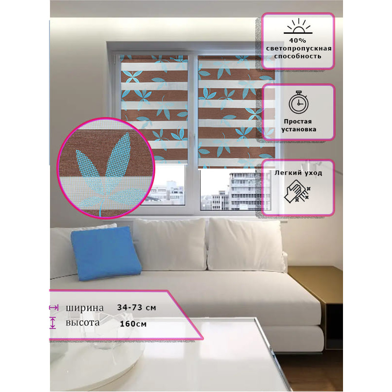 Ролл-шторы День-ночь Зебра Узор листья Арт. 2444-039 стиль и функциональность
