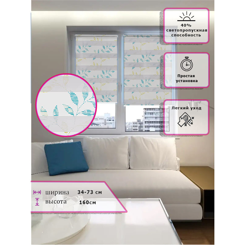 Ролл-шторы День-ночь Зебра Узор листья бирюзовый/зеленый Арт.4362-06 стиль и функциональность