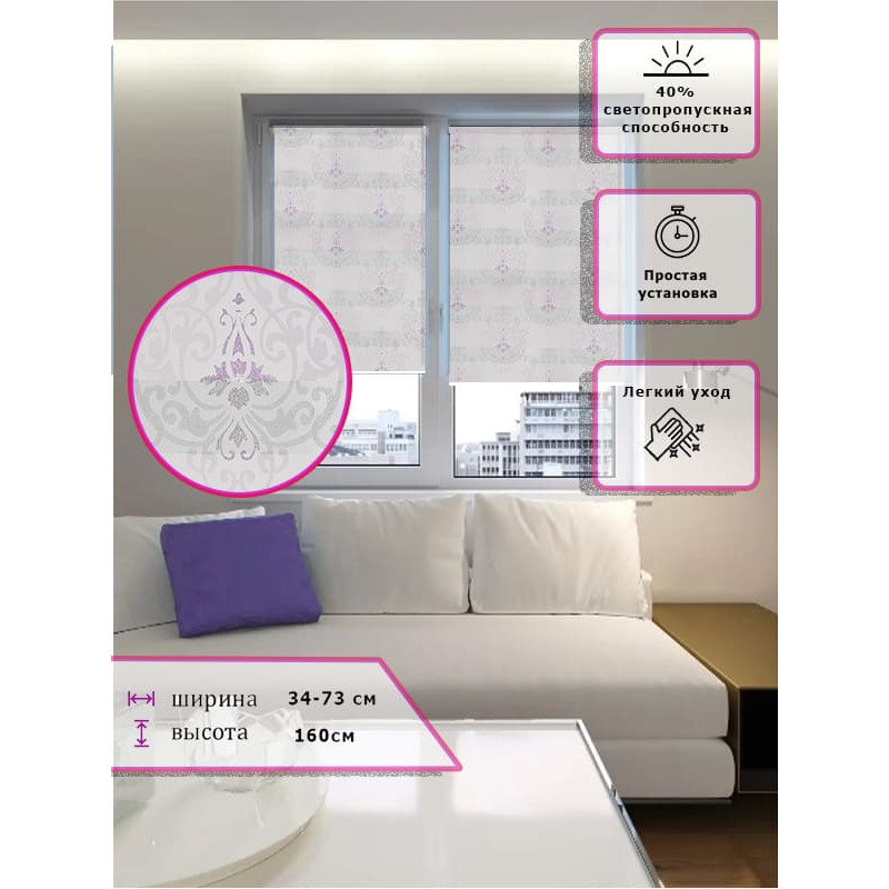 Ролл-шторы День-ночь (Зебра) Узор сиреневый (Арт. 2405-012)