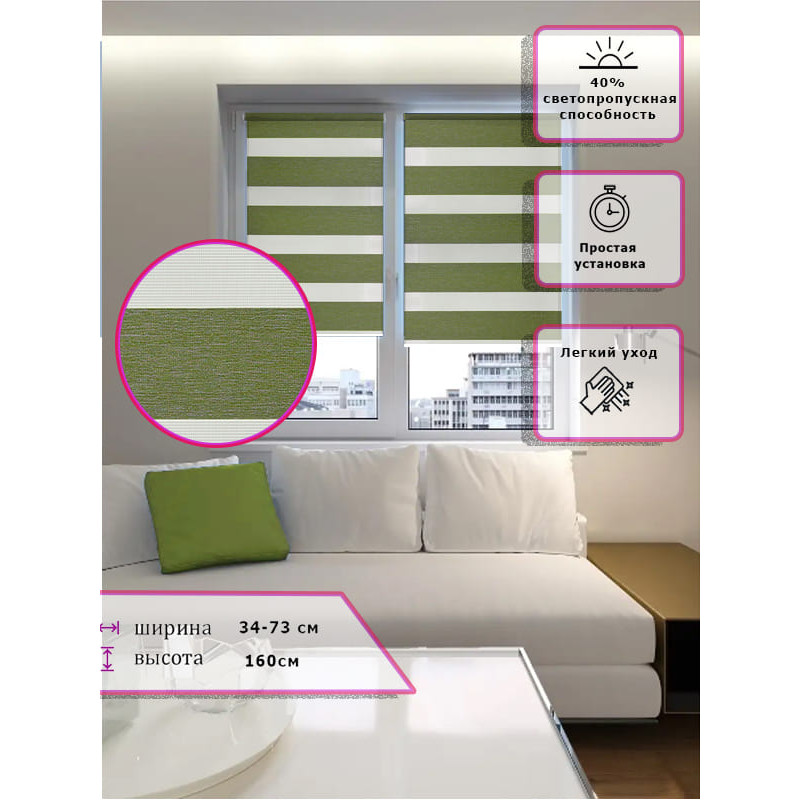 Ролл-шторы День-ночь Зебра Зеленые Арт.600-012 стиль и функциональность
