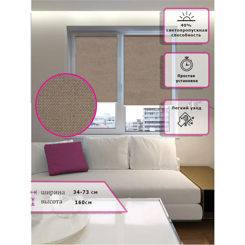 Штора выполнена из прочного полиэстера с обработкой специальным составом отталкивающим пыль.