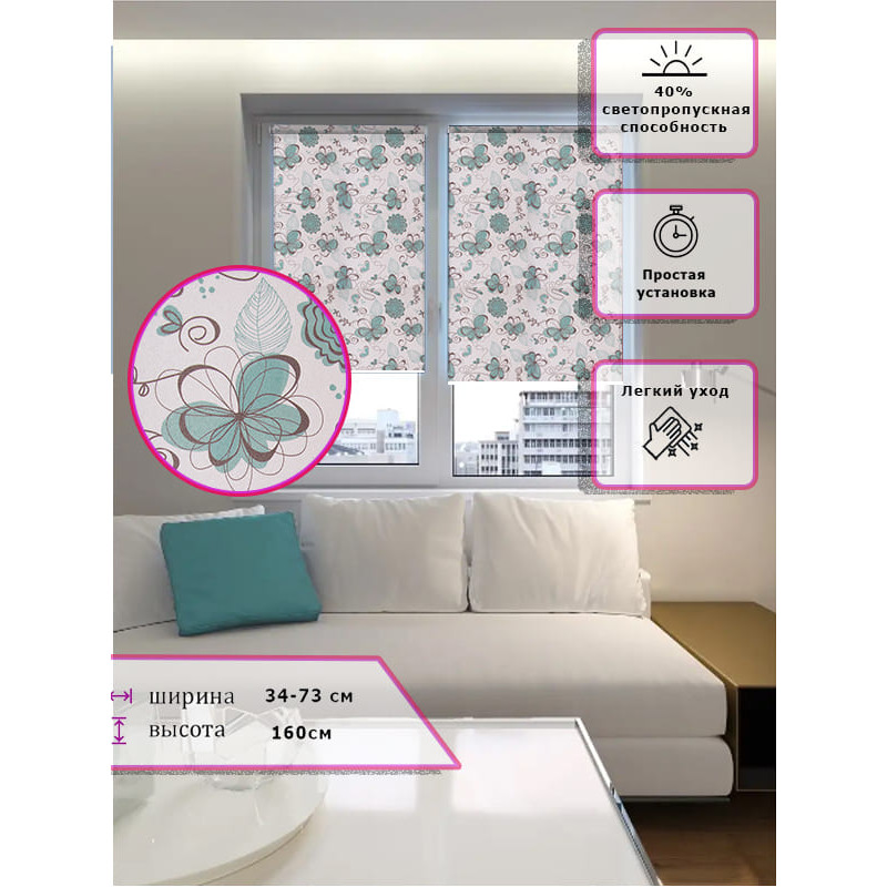 Ролл-шторы Узор цветы Бирюзовые Арт.601-003 стильное и практичное решение