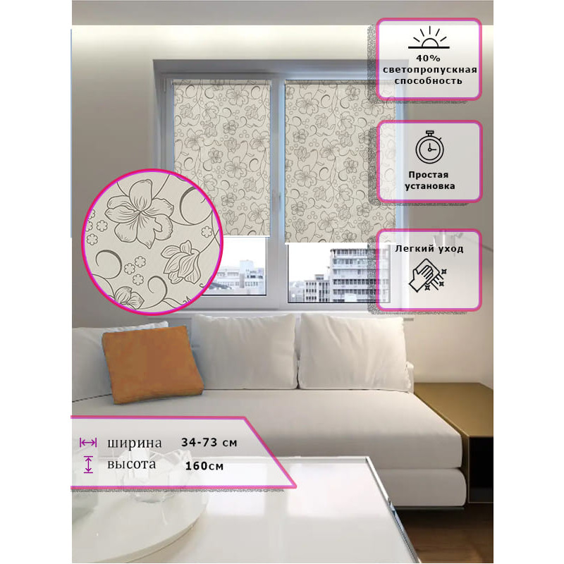 Ролл-шторы Узор цветы Ванильный/Молочный Арт.602-006 стильное и практичное решение