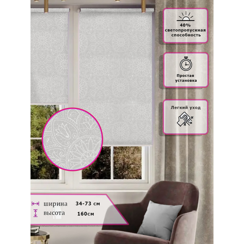Ролл-шторы Узор Мандала Белые Арт. 03-042 стильное и практичное решение