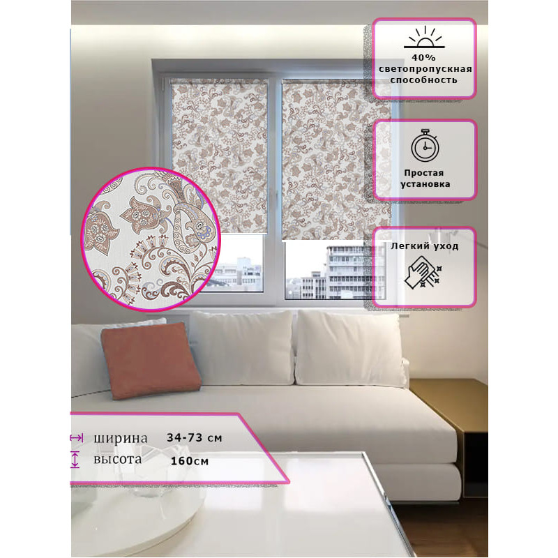 Ролл-шторы Узор Восточные огурцы коричневый Арт.601-012 стильное и практичное решение
