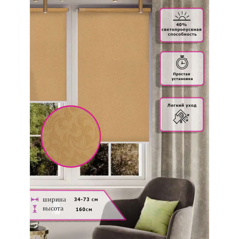 Ролл-шторы Узор Жаккард Песочный Арт.8204 стильное и практичное решение