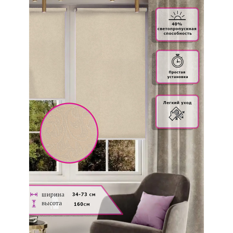 Ролл-шторы Узор Жаккард Светлый Бежевый Арт.8202 стильное и практичное решение