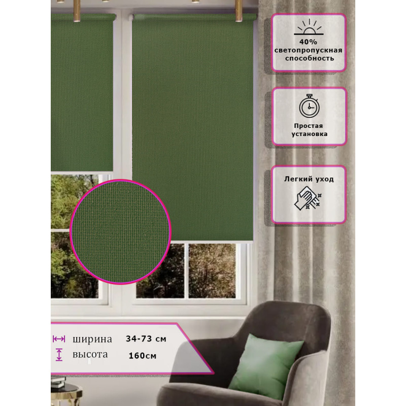 Ролл-шторы Зеленые Арт.6000-219 стильное и практичное решение