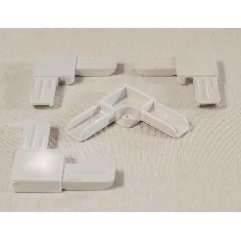 Соедините углы наружной рамы быстро и аккуратно. Прочные белые пластиковые уголки обеспечивают жесткое крепление профилей. Устойчивы к УФ-излучению и перепадам температур.