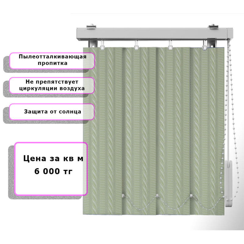 Вертикальные жалюзи (Арт. 197) Узор Зеленый — практичное и стильное решение для оформления оконных проёмов. Они отлично защищают помещение от солнечных лучей, создают комфортную атмосферу и позволяют легко регулировать уровень освещения. Благодаря современным материалам и широкому выбору расцветок жалюзи гармонично впишутся в любой интерьер — от классического до современного.