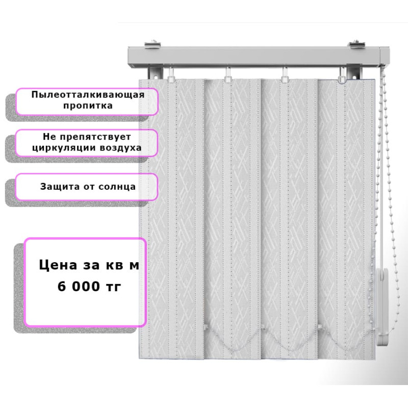 Вертикальные жалюзи (Арт. 4071) Узор Белый — практичное и стильное решение для оформления оконных проёмов. Они отлично защищают помещение от солнечных лучей, создают комфортную атмосферу и позволяют легко регулировать уровень освещения. Благодаря современным материалам и широкому выбору расцветок жалюзи гармонично впишутся в любой интерьер — от классического до современного.