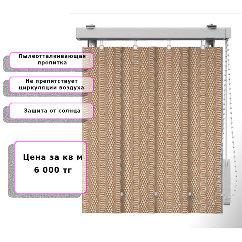 Вертикальные жалюзи (Арт. 4224) Узор Коричневый — практичное и стильное решение для оформления оконных проёмов. Они отлично защищают помещение от солнечных лучей, создают комфортную атмосферу и позволяют легко регулировать уровень освещения. Благодаря современным материалам и широкому выбору расцветок жалюзи гармонично впишутся в любой интерьер — от классического до современного.