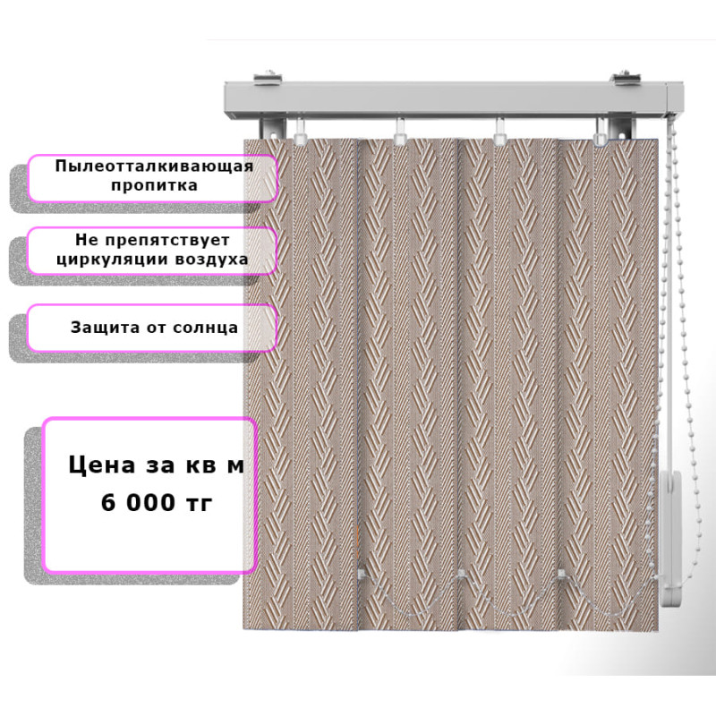 Вертикальные жалюзи (Арт. 4225) Узор Коричневый — практичное и стильное решение для оформления оконных проёмов. Они отлично защищают помещение от солнечных лучей, создают комфортную атмосферу и позволяют легко регулировать уровень освещения. Благодаря современным материалам и широкому выбору расцветок жалюзи гармонично впишутся в любой интерьер — от классического до современного.