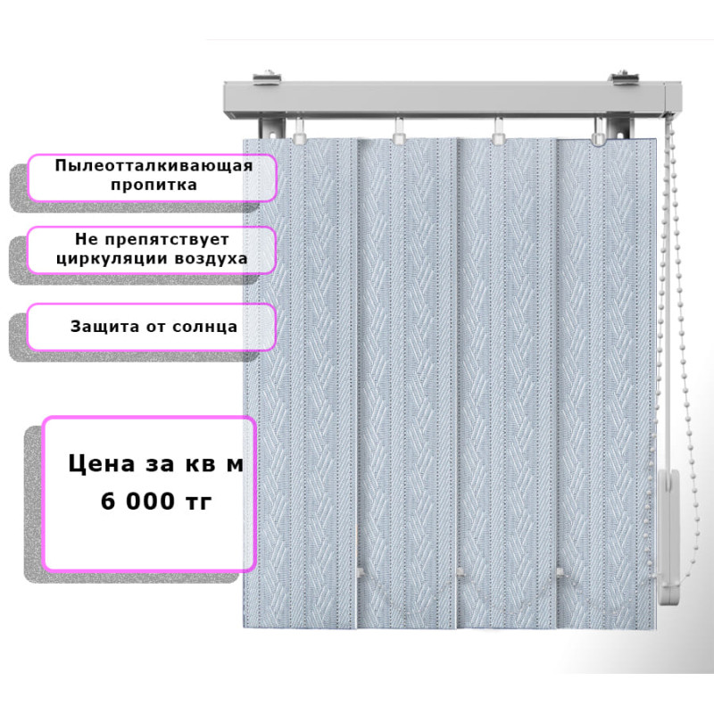 Вертикальные жалюзи (Арт. 4227) Узор Светло голубой - подходят для жилых, офисных и общественных помещений. Уход прост: достаточно протирать ламели влажной салфеткой или использовать мягкую щётку. При необходимости возможна деликатная ручная стирка.