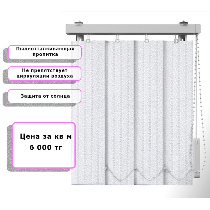 Вертикальные жалюзи (Арт. 451) Бук Белый — практичное и стильное решение для оформления оконных проёмов. Они отлично защищают помещение от солнечных лучей, создают комфортную атмосферу и позволяют легко регулировать уровень освещения. Благодаря современным материалам и широкому выбору расцветок жалюзи гармонично впишутся в любой интерьер — от классического до современного.