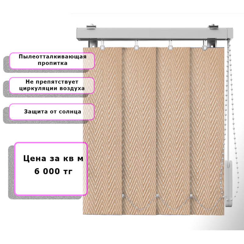 В нашем каталоге представлены вертикальные жалюзи различных оттенков и фактур. Закажите Вертикальные жалюзи (Арт. 752) Елочка Песочный и оцените удобство, функциональность и эстетичность современного солнцезащитного решения.