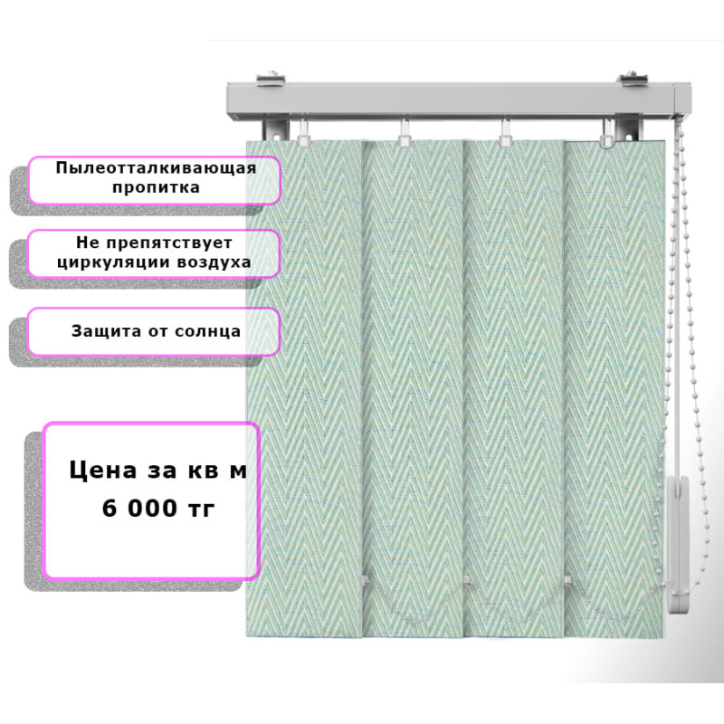 Вертикальные жалюзи (Арт. 758) Елочка Зеленый — практичное и стильное решение для оформления оконных проёмов. Они отлично защищают помещение от солнечных лучей, создают комфортную атмосферу и позволяют легко регулировать уровень освещения. Благодаря современным материалам и широкому выбору расцветок жалюзи гармонично впишутся в любой интерьер — от классического до современного.